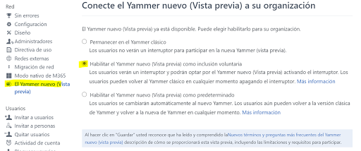 3.- Cambiar a tu nueva versión de Yammer
